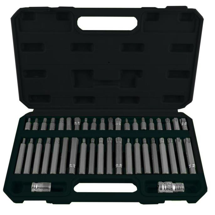 Trusa completa de biti cu 42 de piese, compatibila cu surubelnite si chei cu antrenare standard. Include biti Philips, Pozidriv, Torx, Hex si drepti in diverse dimensiuni. Carcasa organizatoare inclusa pentru depozitare si transport ordonat.